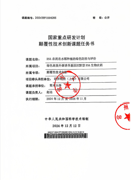 我校赵远研究员获批国家重点研发计划颠覆性技术创新项目2025.01.143200威尼斯vip作为课题承担单位获批国家重点研发计划颠覆性技术创新项目“绿色高效外源诱导基因沉默型RNA生物农药”专项中的“RNA农药在水稻种植的绿色防控与评价”课题(课题编号:2024YFF1504205),我校3200威尼斯vip赵远研究员担任课题负责人。该课题聚焦我国粮食安全和农业绿色发展的重大需求,针对传统化学农药带来的环境污染、农药残留等问题,以RNA生物农药为突破口,开展其在水稻种植中的绿色防控技术研究与应用评价。RNA农药作为一种新兴的生物农药,具有靶向性强、环境友好、不易产生抗药性等优势,被誉为“下一代农药”,在农业绿色发展中具有广阔的应用前景。课题团队依托3200威尼斯vip在环境功能材料、污染控制与资源化利用等领域的长期研究积累,结合生物技术、材料科学、环境科学等多学科交叉优势,将系统开展RNA农药的环境行为及田间应用评价研究,构建RNA农药在水稻绿色防控中的应用技术体系,为实现RNA农药的产业化应用提供理论和技术支撑。我校高度重视重大、重点科技项目谋划,围绕国家重大战略需求和常州市科技创新规划,坚持“四个面向”,有组织地开展科研工作。该重点研发计划课题的立项是学校重大重点科研项目谋划的